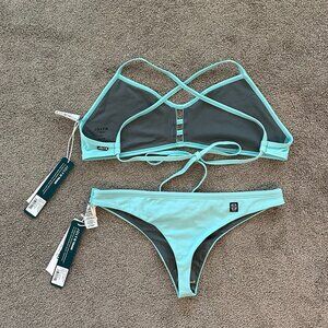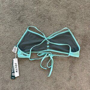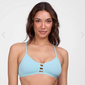 The Tomcat is a supportive bikini top with a scooped neckline and three vents in the front to let water pass through during your workout. This top features tie straps for a perfect (and adjustable) fit.