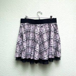 Jon Benbassett black & white cloth w/ Tulle flair Mini Skirt Elastic Waist