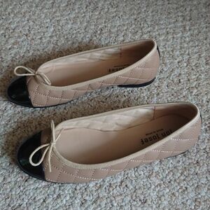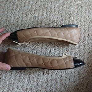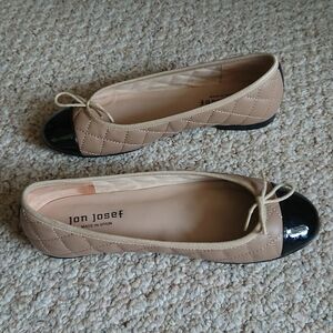 Jon Josef Belle Quilted Tan and Black Ballet Flats size 37.5
