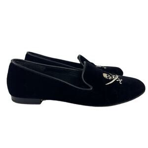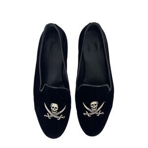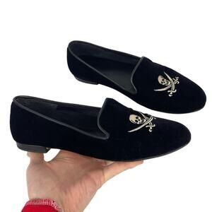 Jon Josef Black Velvet Gatsby Embroidered Skull Flat Loafers Shoes Size 7.5