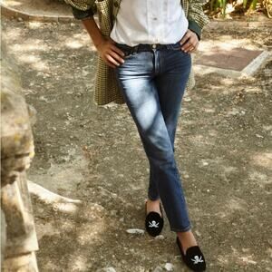 Our classic smoking slipper makes a comeback with it luxurious velvet upper and skull embroidered detailing as seen on First Lady Dr. Jill Biden's toes as she stepped off Marine One on her duties as First Lady.