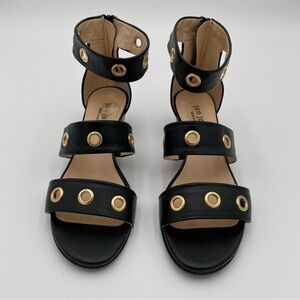 Jon Josef Leather Wedge Strappy Heeled Summer Sandals Right Black Gold Size 7