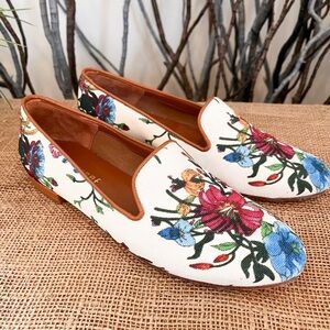 Jon Josef Linen Floral Print Loafer Flats Size 7