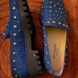 Blue Denim Loafer with metal studs. Excellent Condition. 1 small stud missing from inside the left (see photo). Barely shows since it's on the inside and because there are so many studs. Worn once. Super Comfy.