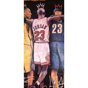 Previously owned, this is a JON LAUREN RED Hoodie Sweatshirt with 3 basketball legends on the front graphic: Kobe Bryant, Michael Jordan and LeBron James. All with crowns on their heads as well as their autographs on the graphic. On both sleeves it says LEGENDS NEVER DIE. GREATEST OF ALL TIME and LEGENDS NEVER DIE are also on the graphic. Pullover.