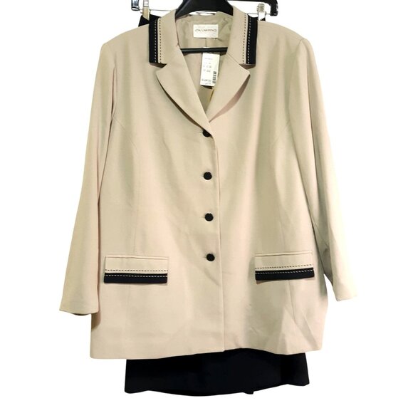 Jon Lawrence Women Beige Blazer Black Skirt Set 22W Lightweight Classic Suit