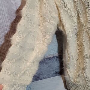 Jon Lawrence Vintage Cream Wool/Angora Beaded Heavy Cowl Neck Sweater BoHo Warm