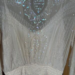 Beautiful cream colored Jona 1920s inspired evening gown with sequins.