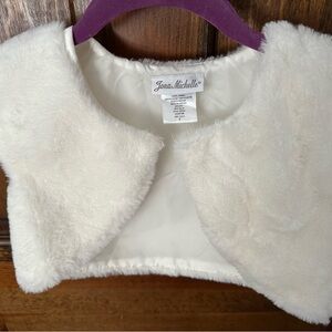 Jona Michelle Elegant White Kids Dress with Faux Fur Vest