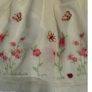 Features: Embroidery, butterflies, ladybugs, full skirt, ribbon waist