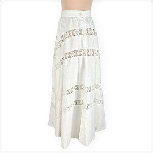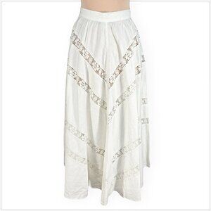 Jona Vintage Vtg White Cream Irish Linen Lace Inset Panel Full Midi Boho Skirt 8