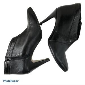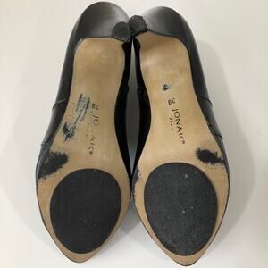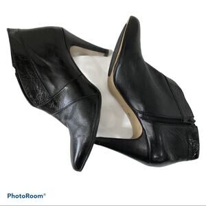 Beautiful and excellent pre-owned condition Jonak Paris black buttery soft leather booties have side zippers, 1 3/4” by 5 1/2” ankle openings, 3 1/2” heels. Pointed toes. Gorgeous, elegant, chic. Size 38 or 7-7.5 US.