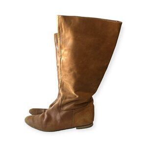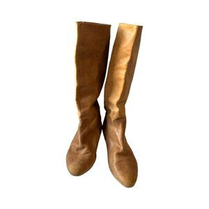 Jonak Paris Tan Distressed Leather Pull on Flat Boots, Size 39/40 EU,
