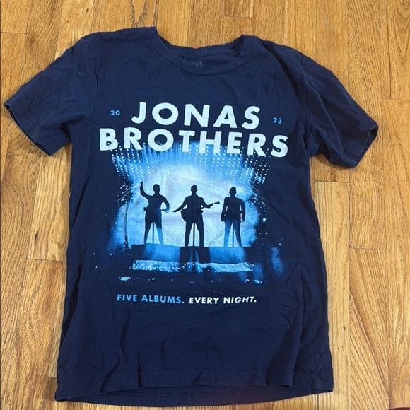 Navy blue t-shirt featuring a Jonas Brothers graphic design. Perfect for fans. In great condition, very soft