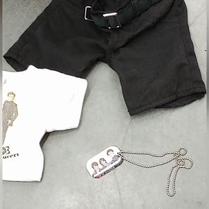 dog tag necklace, pants & shirt. Shirt is stained. Everything else is good.