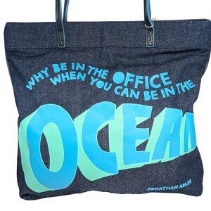 Jonathan Adler NWT Denim Caribbean Why Be In The Office Ocean Printed Tote Bag