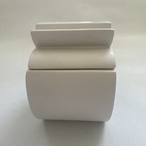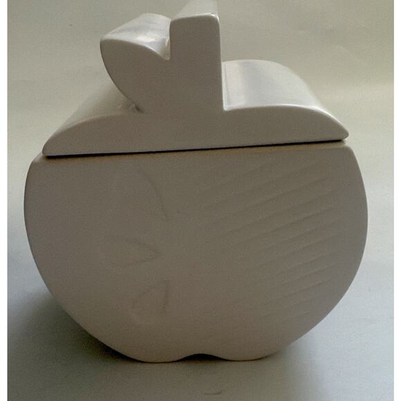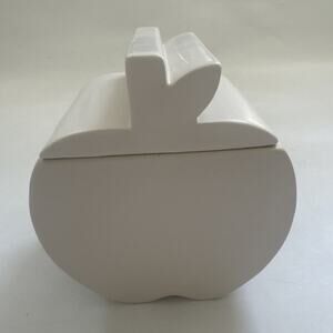 Jonathan Adler Partylite White Pottery APPLE Candle Holder with Lid Home Decor