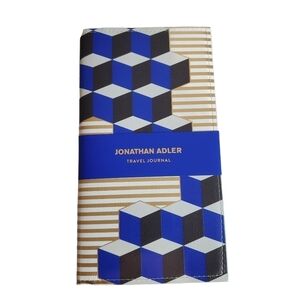 Jonathan Adler Travel Journal Blue Gold Metallic Geometric Vegan Leather New