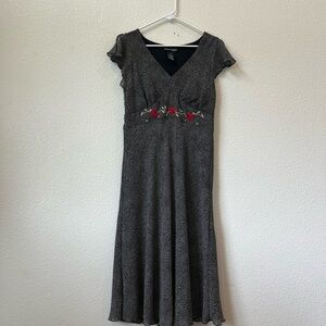 Jonathan Martin Black V-Neck Flutter Sleeve With Flower Detail Midi Dress