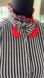 This sophisticated blouse by Jonathan Martin showcases a timeless black and white striped pattern, complemented by a chic mandarin collar and 3/4 sleeves. The elegant design is perfect for both formal and casual occasions, offering a versatile addition to any wardrobe.the clip is holding the bow this item is from the 70
