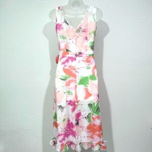 Jonathan Martin Pink Floral Sleeveless Wrap Long Maxi Dress Size 8 Flirty Fairycore Spring Wedding Guest Preowned