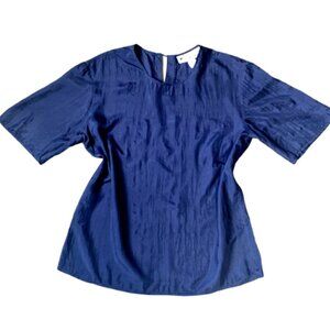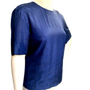 Jonathan Martin Silk Short Sleeve Crew Neck Tee Top Blouse Sz S Navy Blue 3A