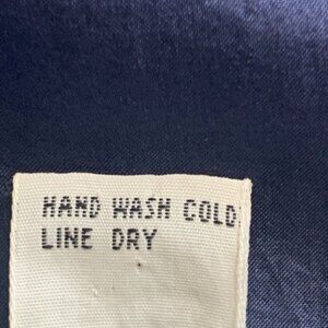 This Jonathan Martin blouse is a vintage navy blue silk top with a crew neck, short sleeves, and button closure. It is a size small, featuring a collarless design and a lightweight, breathable fabric. The classic and minimalist style makes it suitable for various occasions, including parties, casual wear, and business settings. Perfect for a clean and elegant look with a touch of retro sophistication.