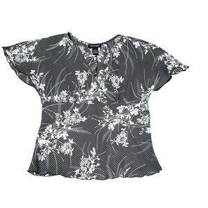 Jonathan Martin Studio Vintage Size 12 Black White Floral Wrap Blouse City Chic