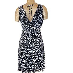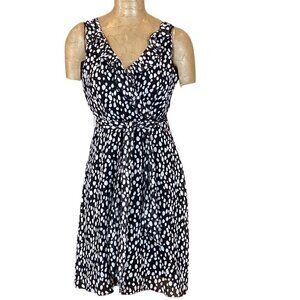 Jonathan Martin Surplice Ruffle Neck Faux Wrap Dress Black Polka Dot Sz 8 #278A