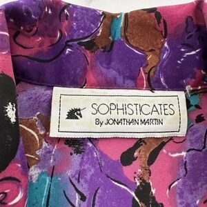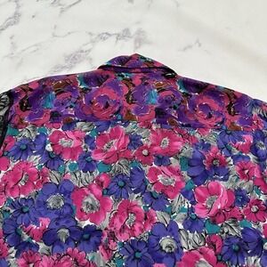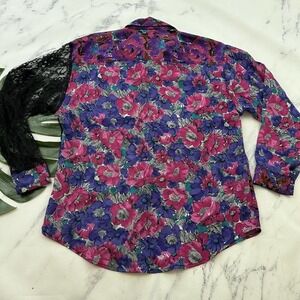 Sophisticates by Jonathan Martin women's vintage pink and black mixed material floral and lace oversize blouse shirt, size M. It is free from any rips or stains. It measures about 42 inches around the bust and is about 28 inches long.