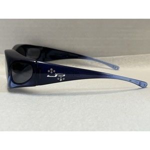 Jonathan Paul fitover sunglasses polarized UV dark blue D481.751 S. Preowned as pictured. Wear on plastic frames. Scratches visible on lens(see pics). I will include a hard sunglasses case from Wide Guyz brand.