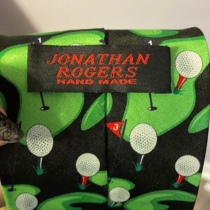 Jonathan Rogers Handmade Silk Golf Tee Green Hole Tie. Very good preowned condition. Great for a gift. Golfing lover. Black tie covered in putting greens, golf balls, hole flags.