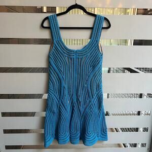Jonathan SIMKHAI Blue Crochet Scalloped Hem Mini Dress Size 6