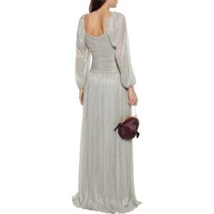 Jonathan Simkhai Adele Metallic Plisse Pleated Silver Long Sleeve Gown Slit Maxi Dress Modest 2 S15
