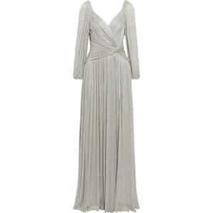 Jonathan Simkhai Adele Metallic Plisse Pleated Long Sleeve Gown Slit Maxi Dress