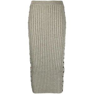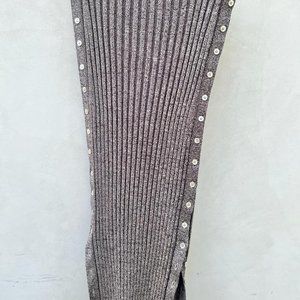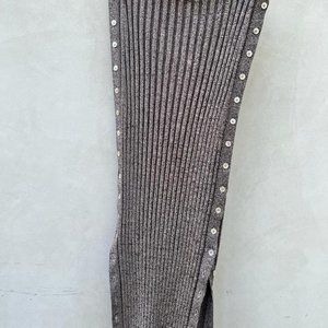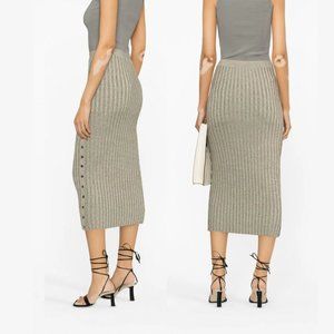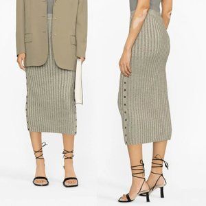 Jonathan Simkhai Ashton Midi Skirt Compact Rib Knit Button Detail Sz S Gray