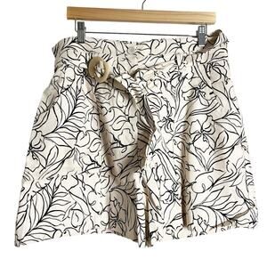 Jonathan Simkhai Beige Floral Linen Belted High Waist Shorts Size 14