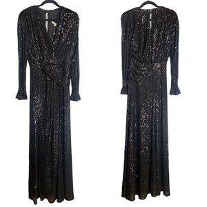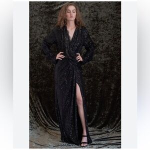 Jonathan Simkhai Black Sequined Plunge Lace Draped Gown NWT