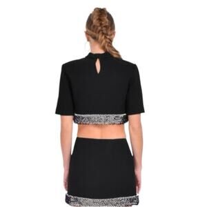 SIMKHAI Jalen Embellishment Crepe Crop Top in Black