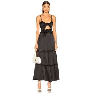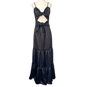 Jonathan Simkhai Black Tiered Cutout Spaghetti Strap Bow Tie Midi Dress Medium