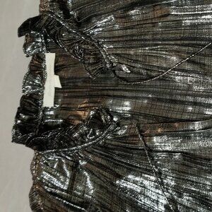 Jonathan Simkhai Blouse Metallic Silver Plisse Ruffle Flowy V Neck Holiday NYE
