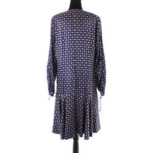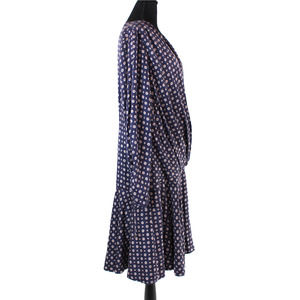 Jonathan Simkhai Blue Pink Print Ruffle Wrap Dress 16 Long Sleeve Knee Length