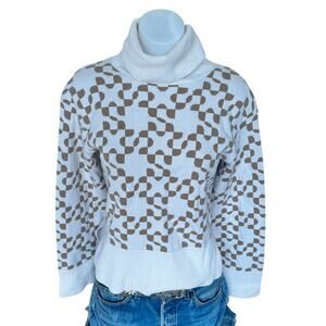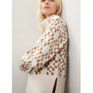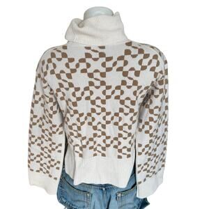 Jonathan Simkhai Brown White Turtleneck Logo Sweater XS Boxy Wool Oversized $400