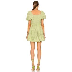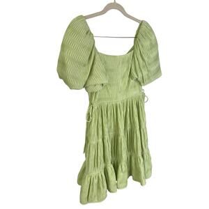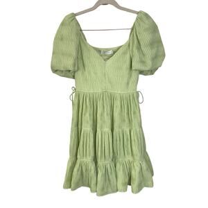Jonathan Simkhai Cadence Plisse Dress Puff Sleeve Tiered Coastal Prairie Sz 2