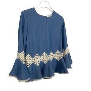 Jonathan Simkhai Chambray Bell Sleeve Lace Top Blouse Size XS
