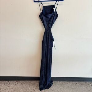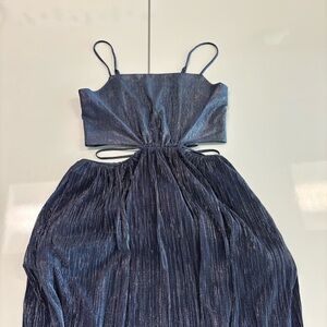 Jonathan Simkhai Daisy Metallic Navy Blue Cutout Gown size 10