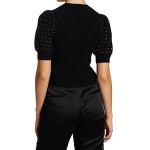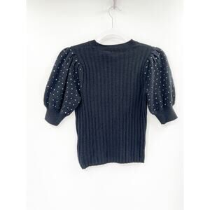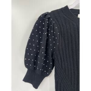 Jonathan Simkhai Daphne Wool Cashmere Knit Black Embellished Puff Sleeve Sweater