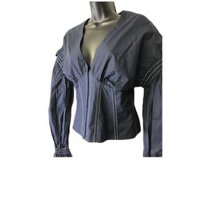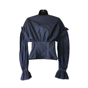 Jonathan Simkhai Deep Blue Ruffle Blouse
