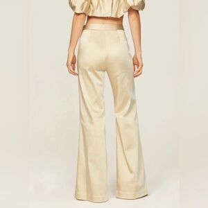 Jonathan Simkhai Duchesse-Satin Bootcut Pants High Rise in Goldish Cream Sz 8