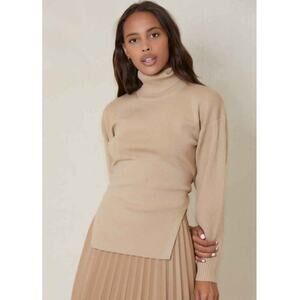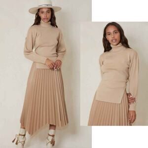 Securing an open back with delicate self ties, the Eleanor turtleneck is a cozy statement-maker with voluminous rib knit blouson sleeves